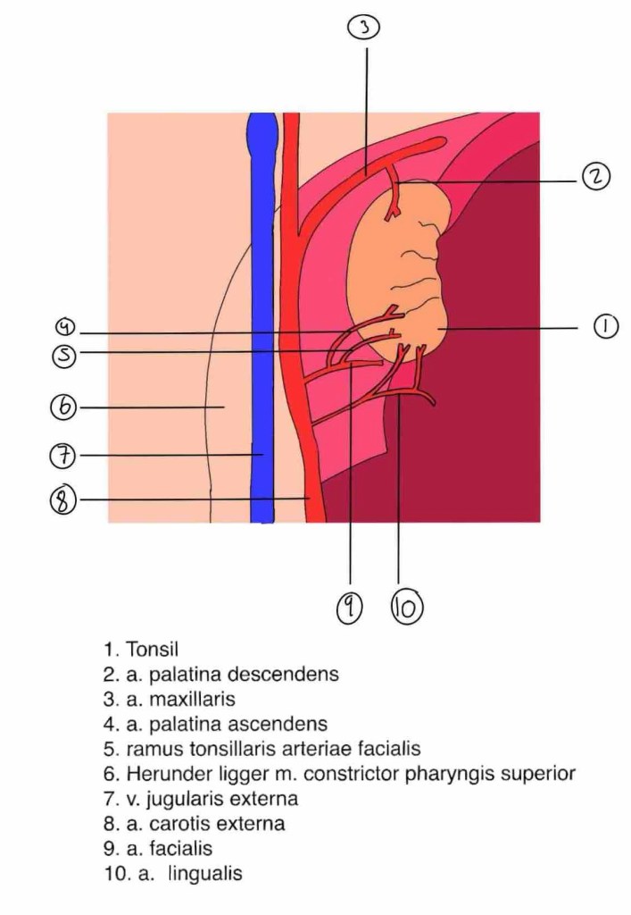 - Punktum maksimum i abscessen identificeres (oftest er slimhinden mere lilla i farven, oftest øvre pol lateralt fra tonsillen)